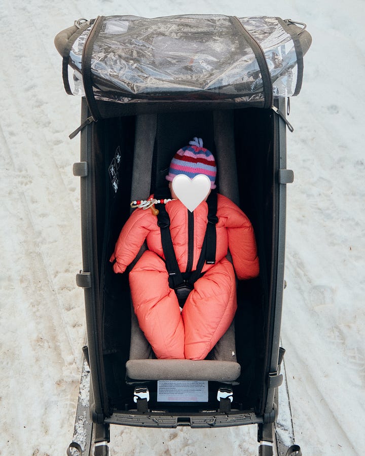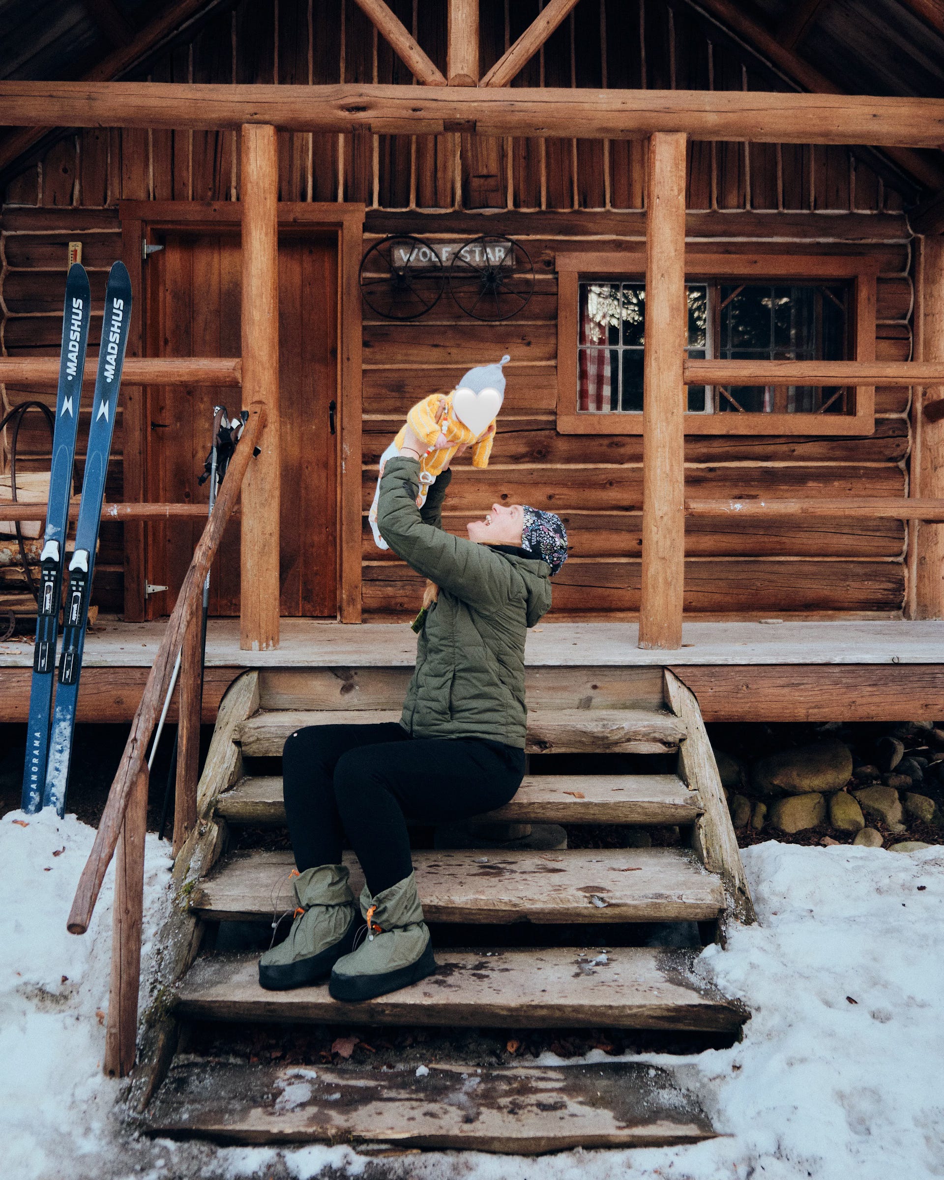 “No problem,” I whisper back. I pause, not wanting to start a full-fledged conversation in the wee hours of the morning, before deciding it needs to be said. “I’m so proud of us. Hut-to-hut skiing. At three months old. We’ve freaking done it!”