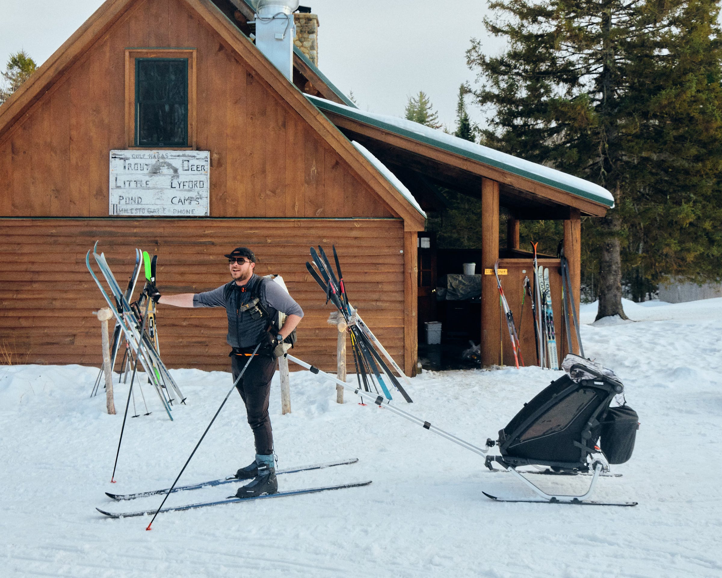 Eventually, I limp-skied out onto the K-I Road crossing, still some 3.5 miles from Gorman Chairback. I was fully defeated. Hearing the roar of a snowmobile, I decided to wait, take a break, and let them pass. Lo and behold, it was the gear shuttle that offered me a ride back to Gorman Chairback, where they’d just dropped my replacement skis!