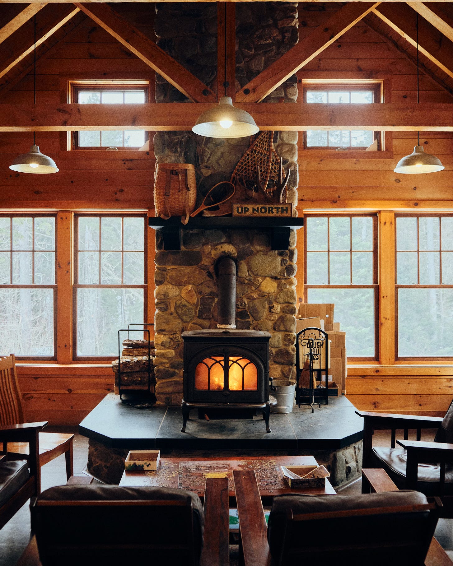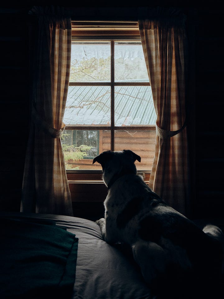 A flurry of activity upon arrival follows—unpacking bags, diaper changes, crib setup—then the first bite of that turkey and salami sandwich, with Elliot staring intently at the crackling woodstove. Kiwi sighs heavily, curling into a ball and shutting her eyes.