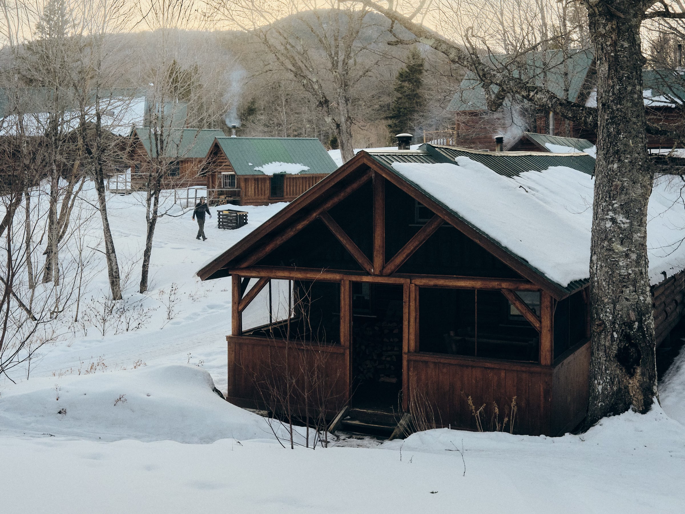 Twenty minutes can feel like an hour in there—intensely hot, dark, silent. Truly peaceful. Just me, my thoughts, and my sweat. A real treat for anyone, but especially a new parent. I get out, rinse, and walk back to our little cabin still dripping—basically a cold plunge.